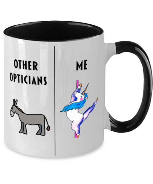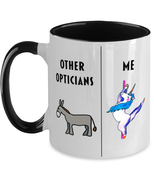 Funny Optician Coffee Mug, Gift for Optician, Gag Gift for Optician, Unique Gift for Optician, Cheap Optician Gift, Donkey Unicorn Two Tone Black Mug
