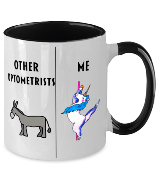 Funny Optometrist Coffee Mug, Gift for Optometrist, Gag Gift for Optometrist, Unique Gift for Optometrist, Cheap Optometrist Gift, Donkey Unicorn Two Tone Black Mug