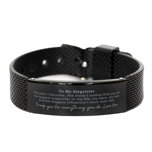 Stepsister Gift. To My Stepsister, You are the Biggest Supporter in my Life. Appreciation Gifts for Birthday. Thank You Message Gift. Black Shark Mesh Bracelet for Stepsister
