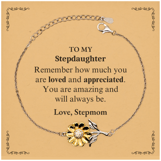 Adjustable Sunflower Bracelet for Stepdaughter Birthday Gifts for From Stepmom, Graduation Stepdaughter Idea Gifts Remember how much you are loved and appreciated.