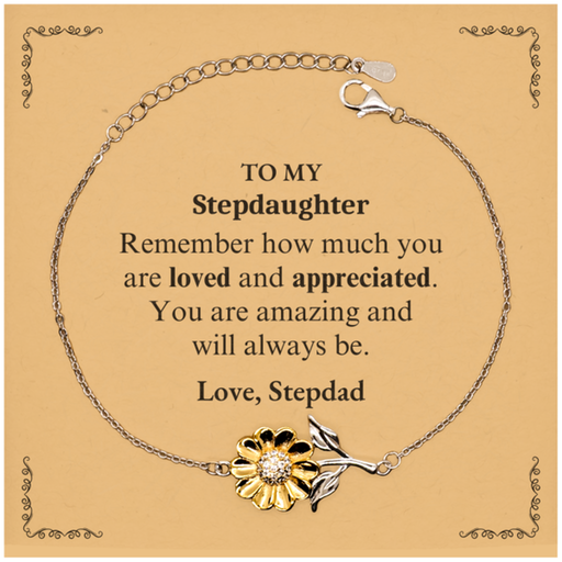 Adjustable Sunflower Bracelet for Stepdaughter Birthday Gifts for From Stepdad, Graduation Stepdaughter Idea Gifts Remember how much you are loved and appreciated.