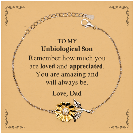 Adjustable Sunflower Bracelet for Unbiological Son Birthday Gifts for From Dad, Graduation Unbiological Son Idea Gifts Remember how much you are loved and appreciated.